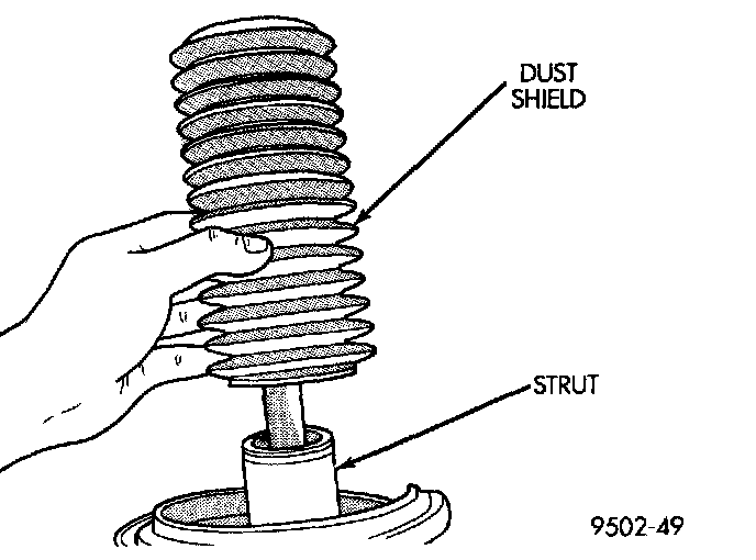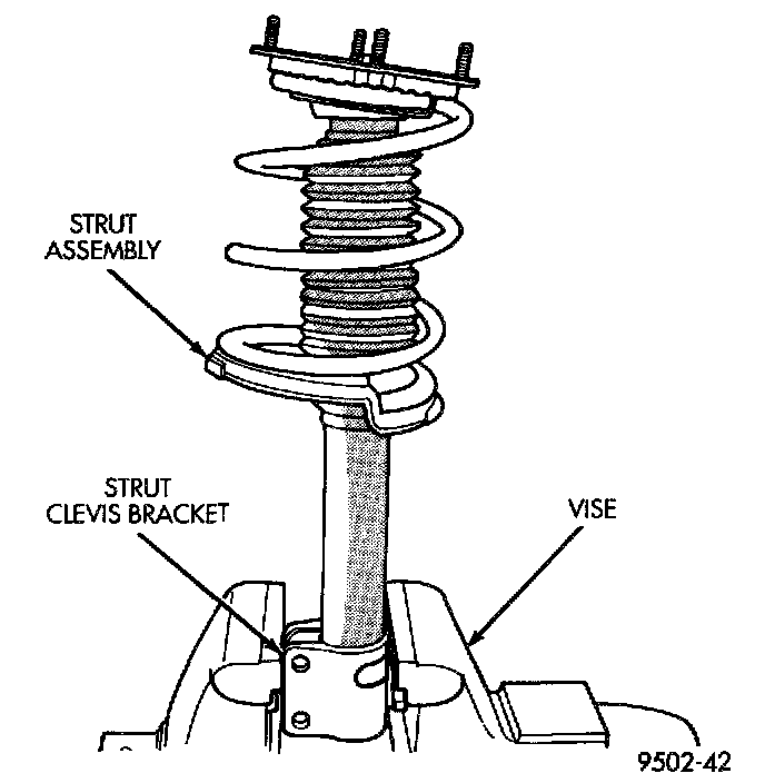 DISASSEMBLYThe rear strut unit is not serviced and must be replaced as an assembly if found to be defective. The strut is available with 2 calibrations, be sure strut is replaced with an assembly of the same calibration.