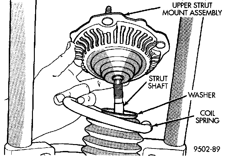 6. Remove upper strut mount assembly from strut shaft and spring.