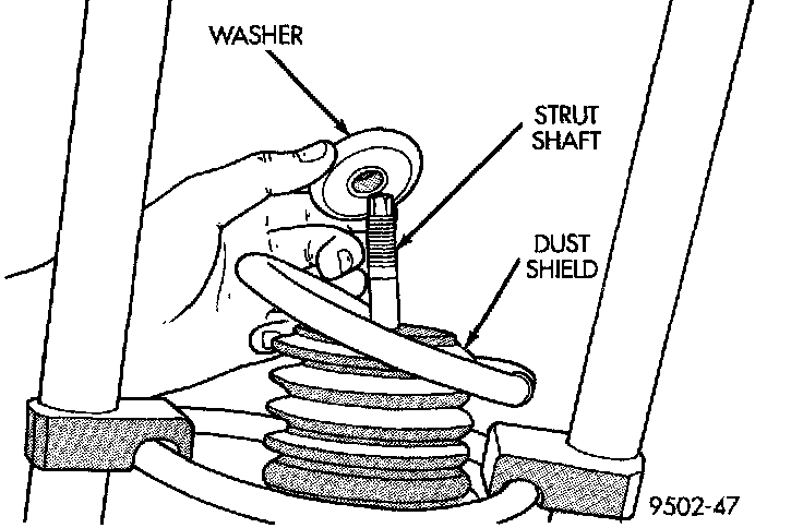 5. Install washer on strut shaft with raised edge of washer facing upward.