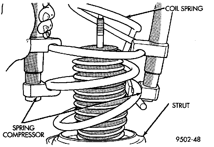 8. Remove the coil spring and spring compressor as an assembly from the strut.