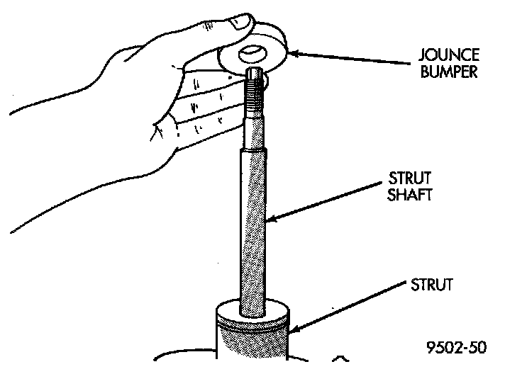 10. Remove the jounce bumper from the shaft of the strut assembly.