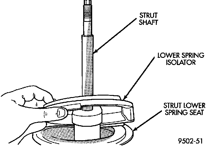 11. Remove the coil spring lower isolator from the strut assembly spring seat.