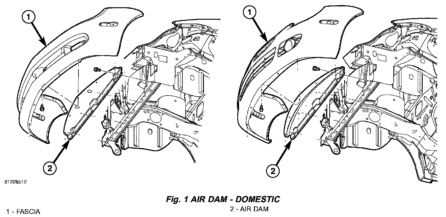 5. SRT-4 vehicle install air dam four attaching screws (Fig. 2).