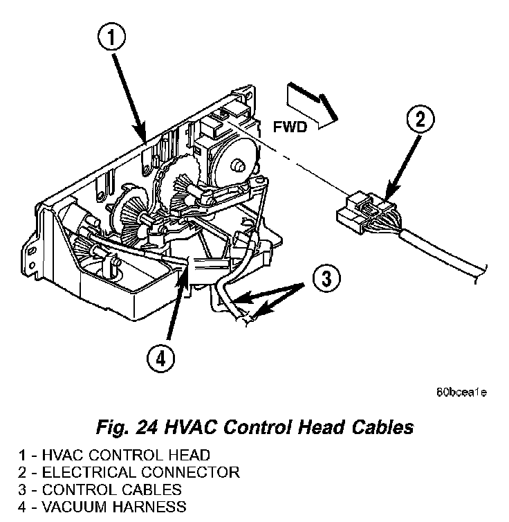 NOTE:The Mode Control Cable can be removed and installed without having to remove the instrument panel from the vehicle.REMOVAL