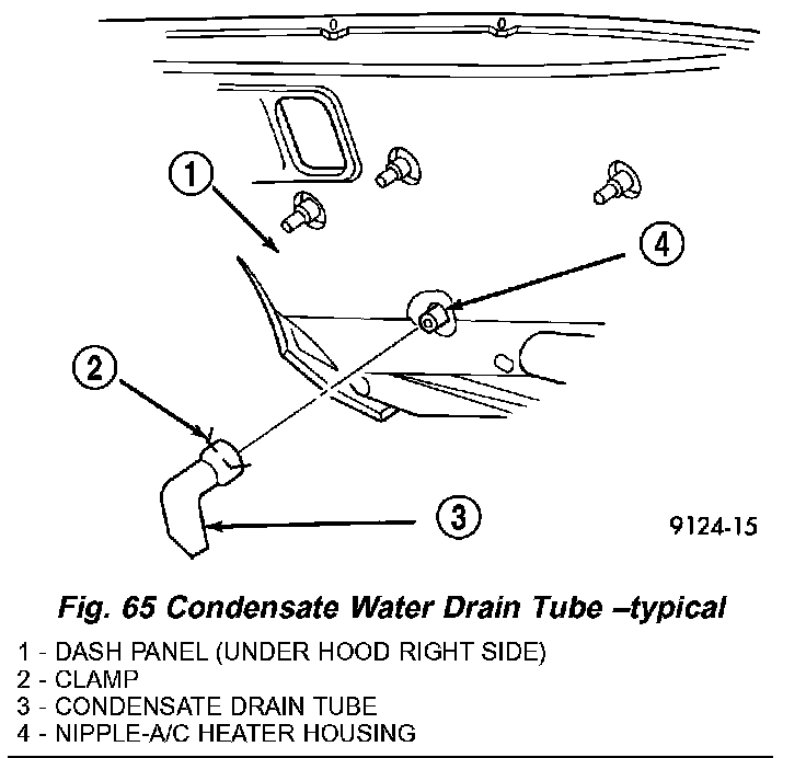 2. Locate rubber drain tube on right side of dash panel under the hood.