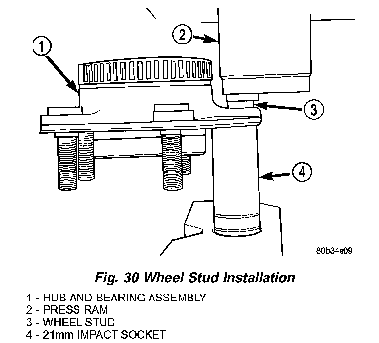 CAUTION: Take care to keep hub and bearing assembly from falling during stud removal. Damage to the hub and bearing could result.