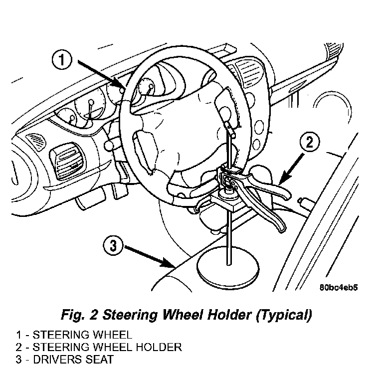 1. Place the steering wheel in the STRAIGHT-AHEAD position. Using a steering wheel holder, lock the steering wheel in place to keep it from rotating. This keeps the clockspring in the proper orientation.