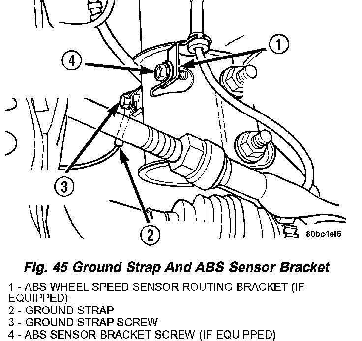 5. If the vehicle is equipped with Antilock brakes (ABS), remove the screw securing the ABS wheel speed sensor to the rear of the strut.
