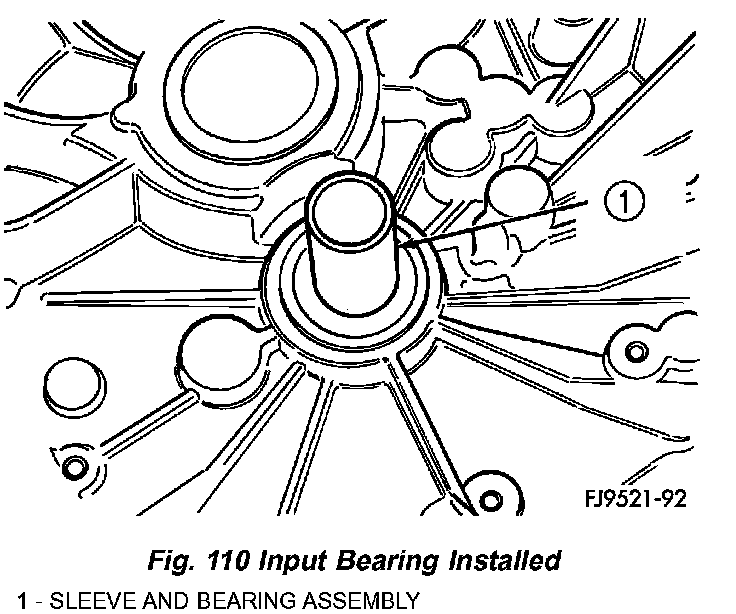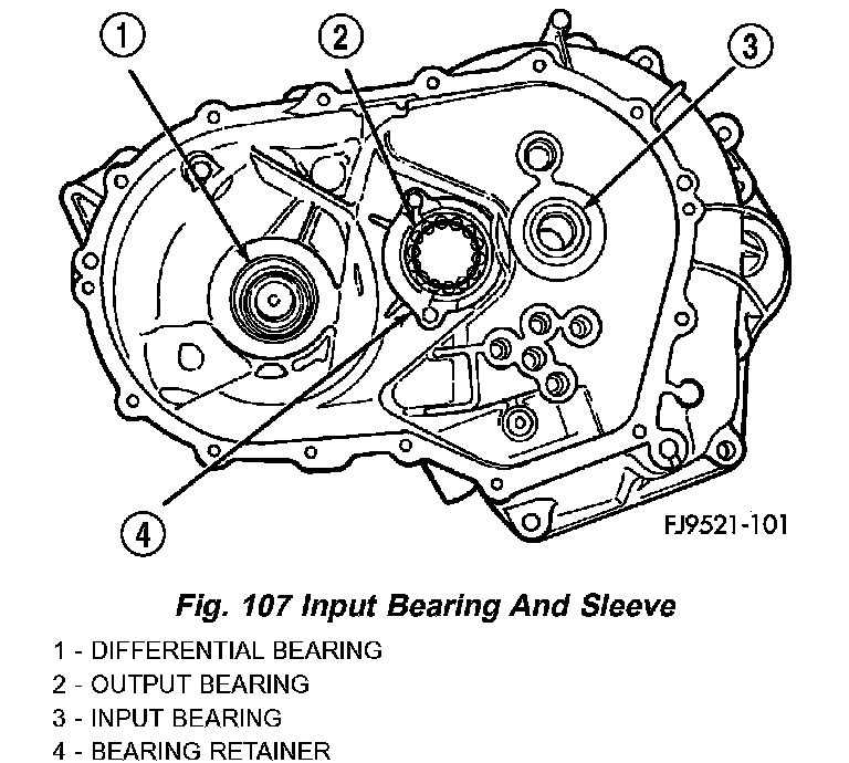 The input bearing is a one-piece bearing and sleeve unit (Fig. 107). The sleeve is the slide point for the clutch-release bearing and lever.