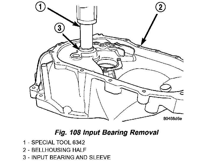 1. Install tool #6342 over input bearing on the gear case side of the transaxle clutch housing.