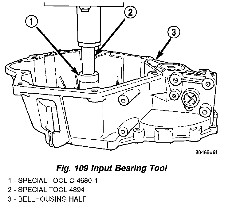2. Install tool #C-4680-1 over input bearing (Fig. 109).