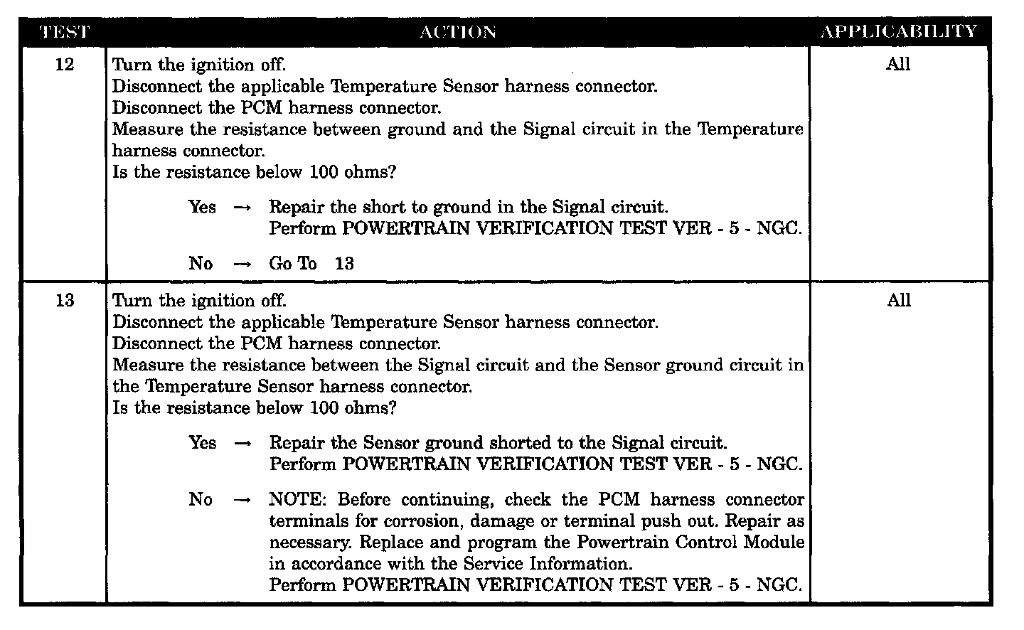 The PCM predicts a coolant temperature value that it will compare to the actual coolant temperature. If the two coolant temperature values are not within 10° C (18° F) of each other an error is detected. Two Trip Fault.
