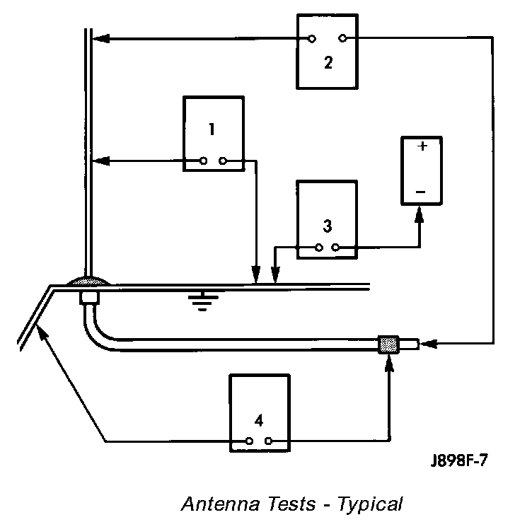 The following four tests are used to diagnose the antenna with an ohmmeter:- Test 1 - Mast to ground test