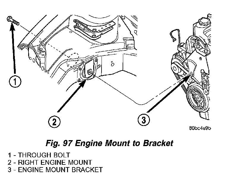 11. Remove right engine mount to engine mount bracket through bolt (Fig. 97).