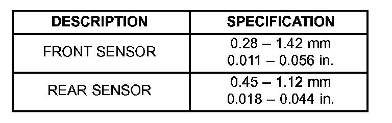 REAR SENSOR 0.45 - 1.12 mm (0.018 - 0.044 inch)