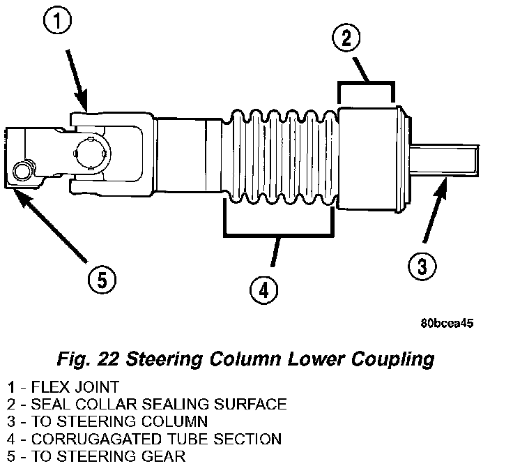 DESCRIPTION - STEERING COUPLING (LOWER)This vehicle uses a corrugated design lower coupling to connect the steering column to the steering gear (Fig. 22).