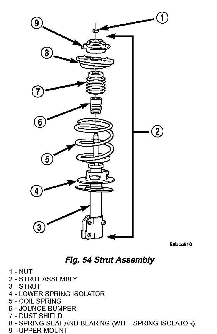 Inspect the strut assembly for the following conditions (Fig. 54):