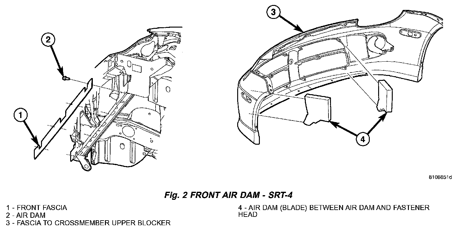 5. SRT-4 vehicle install air dam four attaching screws (Fig. 2).