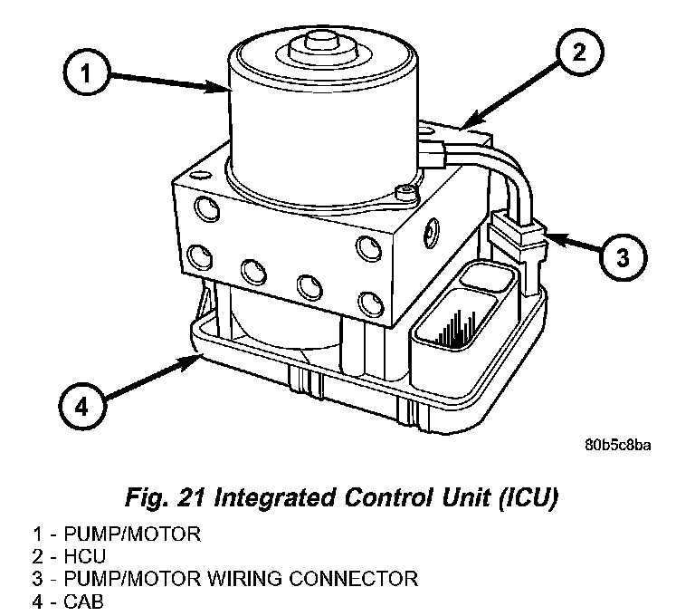 1. Disconnect the pump/motor wiring harness from the CAB (Fig. 21).