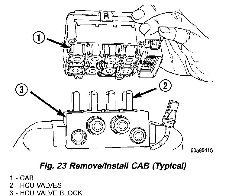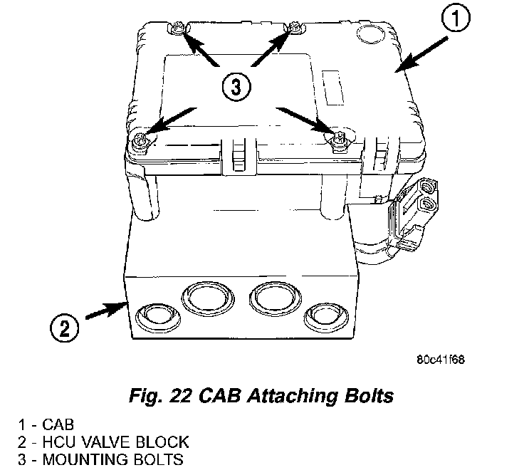 2. Remove the 4 bolts attaching the CAB to the HCU (Fig. 22).