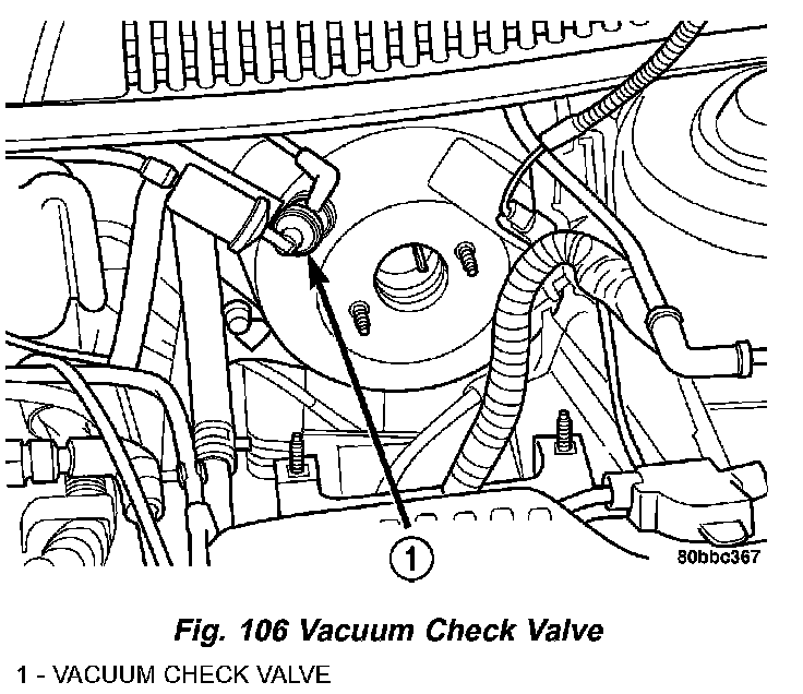 6. Connect all previously removed vacuum hoses to the vacuum check valve (Fig. 106).