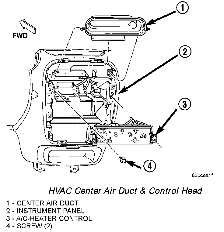 HVAC Center Air Duct & Control Head: