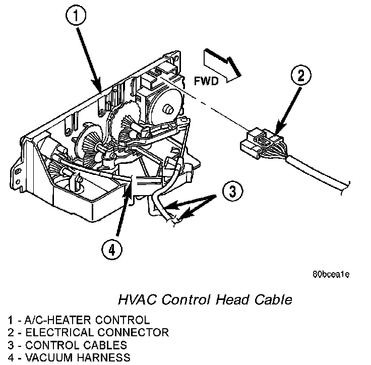 REMOVALNOTE: The mode control cable can be removed and installed without having to remove the instrument panel from the vehicle.