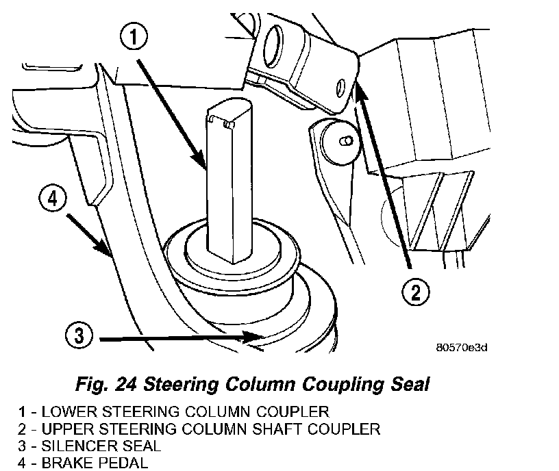 5. If the lower coupling does not require replacement, install the dash panel-to-steering column coupling silencer seal (Fig. 24) back on the vehicle.
