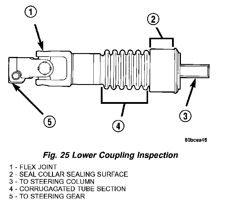 ^ Inspect the corrugated section (Fig. 25) of the lower coupling for the following conditions or any other visible signs of damage.