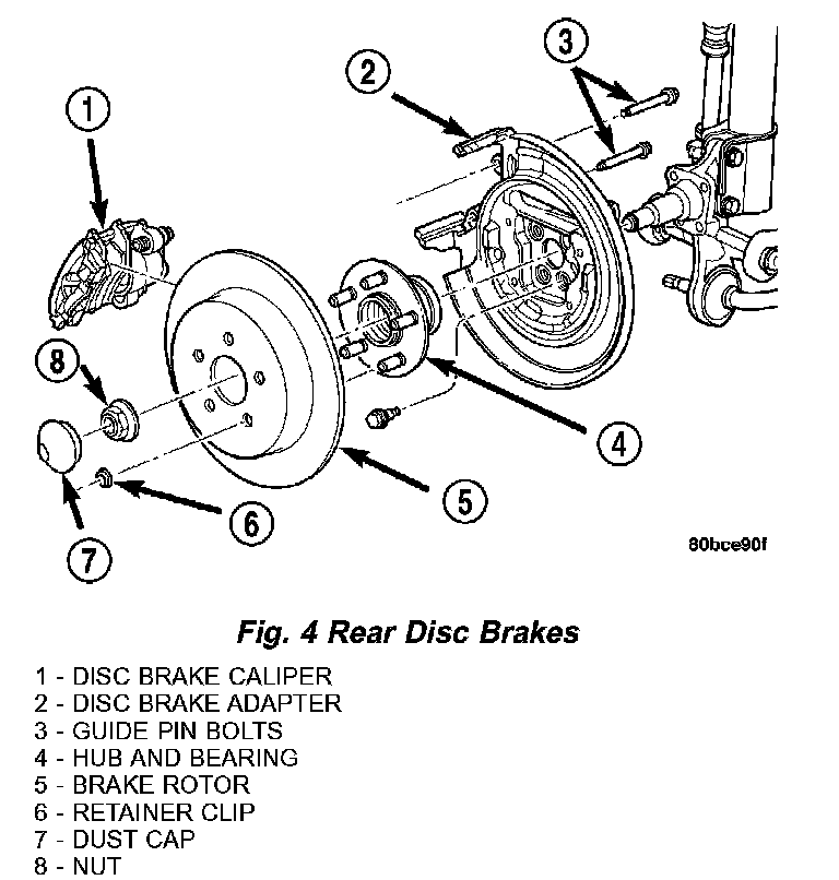 6. If the vehicle is equipped with rear disc brakes (Fig. 4), perform the following: