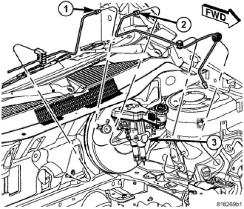 CAUTION: When installing a master cylinder on the vehicle, a NEW vacuum seal (2) MUST be installed on the master cylinder mounting flange (1).