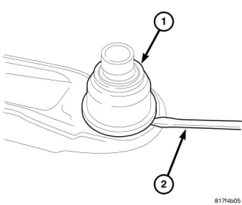 2. Using a screwdriver or other suitable tool (2), pry the seal boot (1) off of the ball joint.