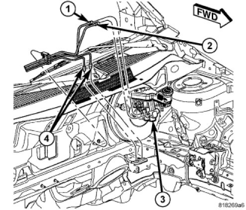 8. Connect the primary (1) and secondary (2) brake tubes to the master cylinder outlet ports. Tighten the tube nuts to 17 Nm (150 in. lbs.).