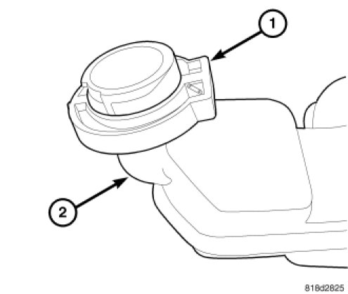10. If not present, a reservoir blocker (1) must be installed on the fluid reservoir (2). The blocker can be removed from the original reservoir by releasing the retaining tab (3) and opening the blocker. To install the blocker, encircle the reservoir neck with the blocker, close the blocker, snapping the retaining tab into place. Make sure the blocker is securely latched.