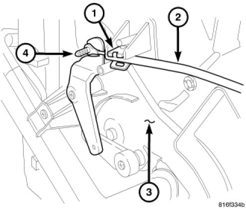 5. Disconnect the temperature control cable from the blend door pivot lever (4) and remove the cable from the vehicle.