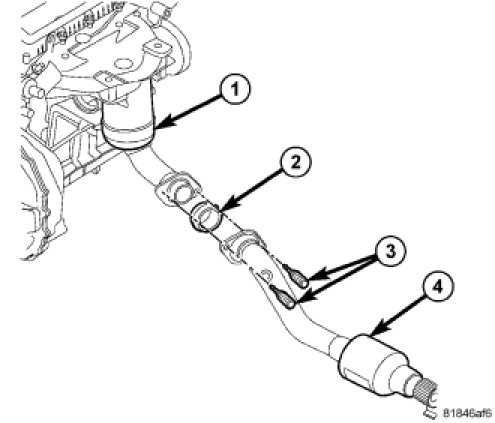5. Remove under floor catalytic converter (4) from combination manifold/catalytic converter assembly (1).