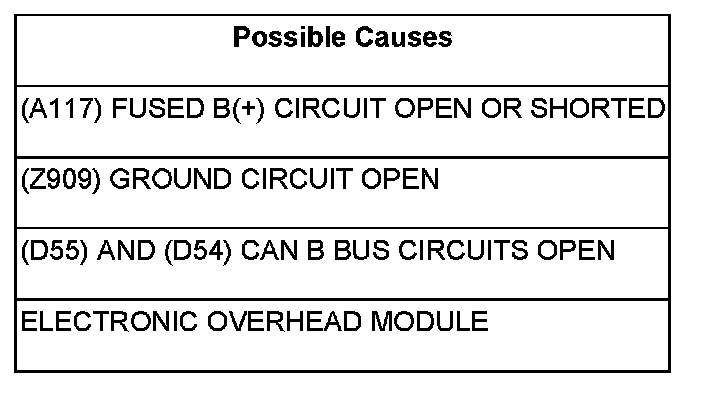 - Repair the (D55) and (D54) CAN B Bus circuits for an open. Inspect the connector for damage.