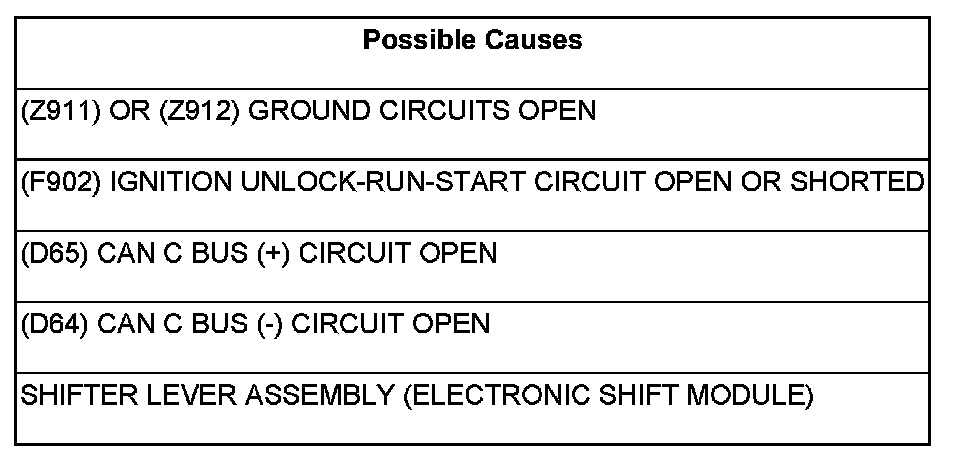 No Response From ESM (Electronic Shift Module) (Shifter Lever Assembly)