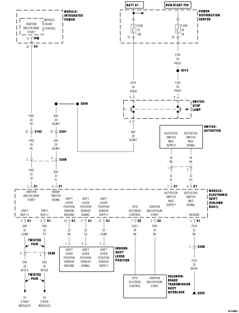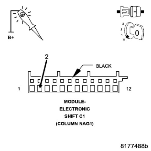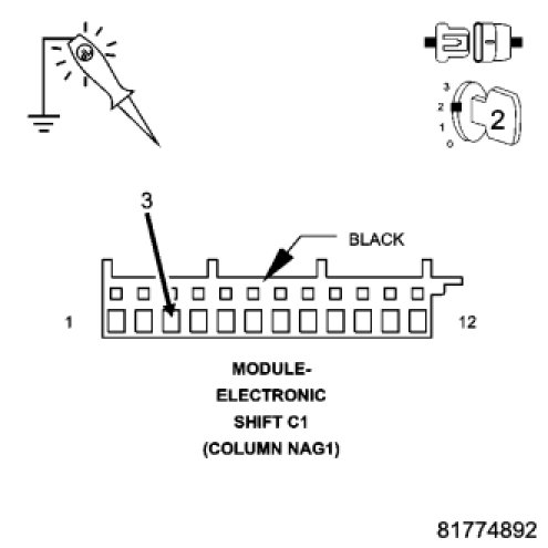 - Using the schematics as a guide, check the Electronic Shift Module (ESM) terminals for corrosion, damage, or terminal push out. Pay particular attention to all power and ground circuits. If no problems are found, replace the ESM (Steering Column).