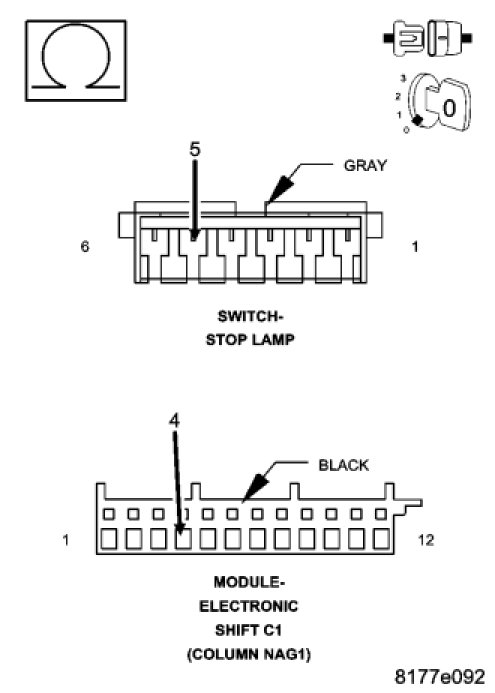 - Using the schematics as a guide, check the Electronic Shift Module (ESM) terminals for corrosion, damage, or terminal push out. Pay particular attention to all power and ground circuits. If no problems are found, replace the ESM (Steering Column).
