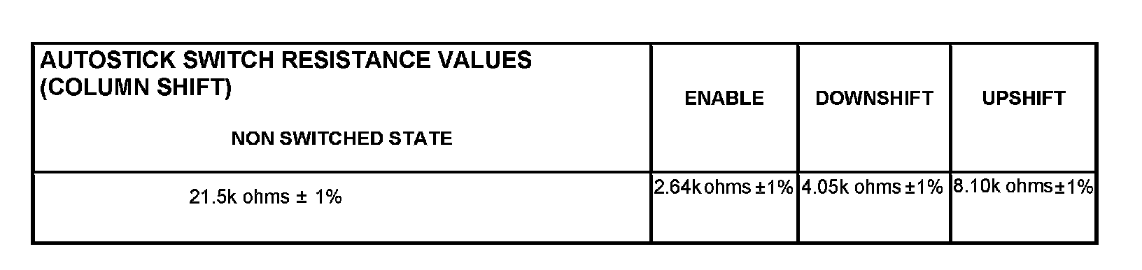 Autostick Switch Resistance Values (Column Shift):