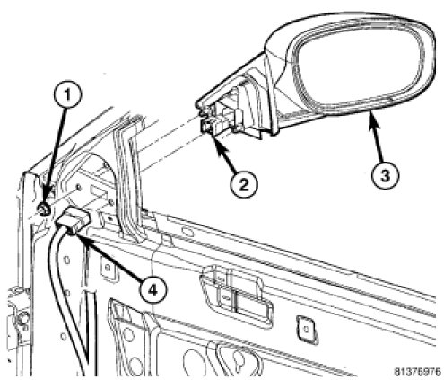 3. Connect the door wire harness connector (4) to the mirror electrical connector (2).
