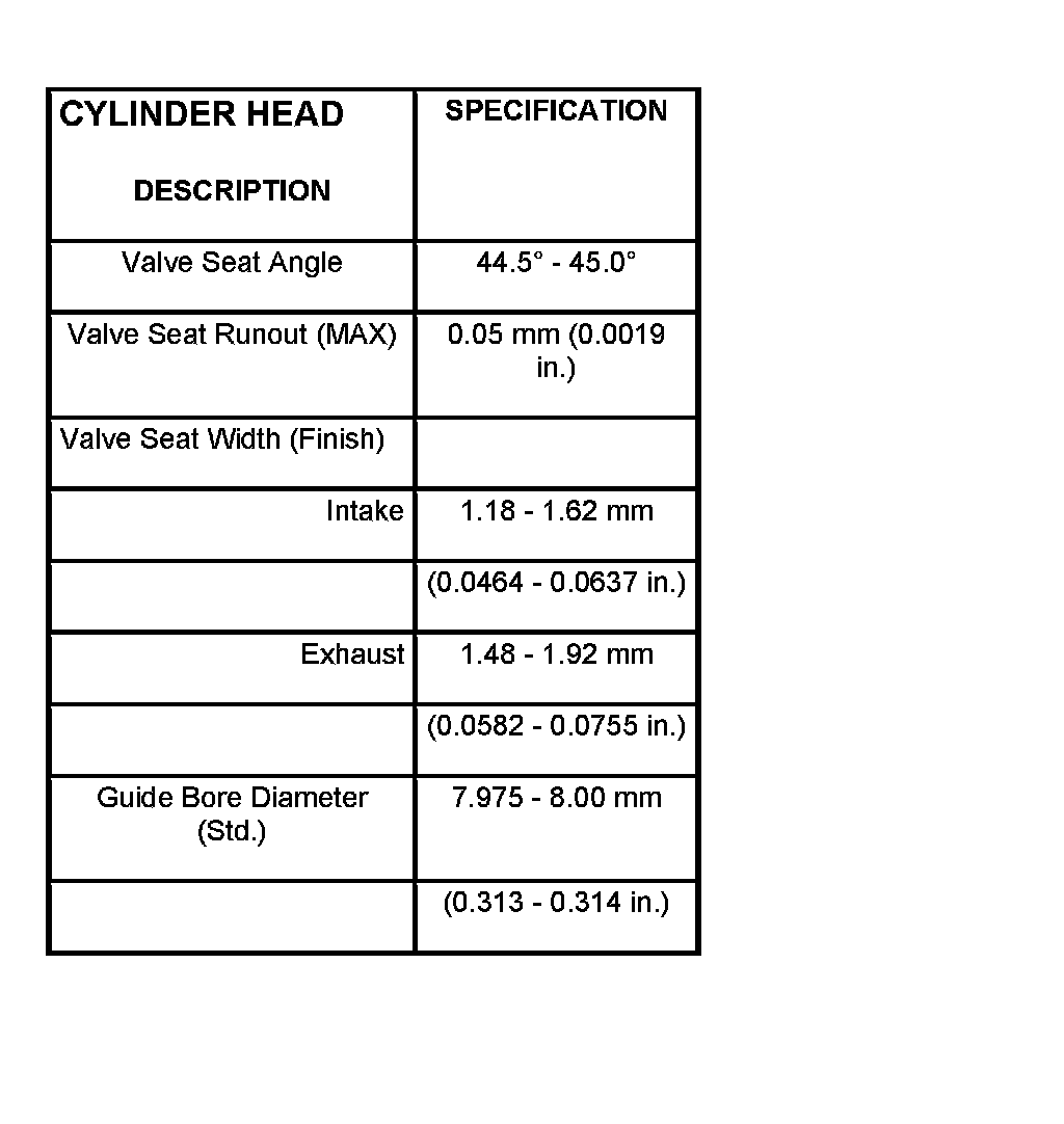Inspect the cylinder head for out-of-flatness, using a straightedge and a feeler gauge. If tolerances exceed 0.0508 mm (0.002 in.) replace the cylinder head.