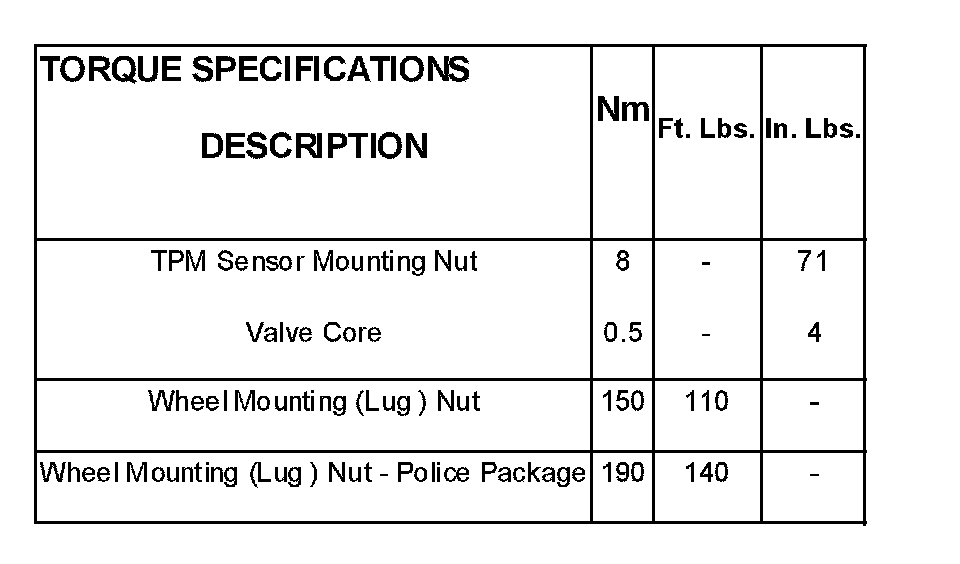 Torque Specifications: