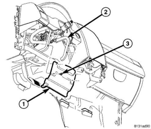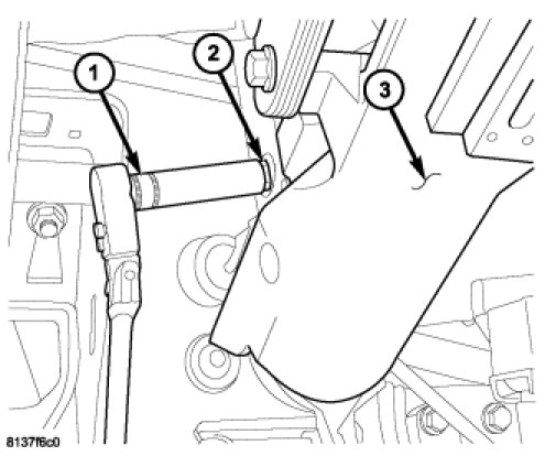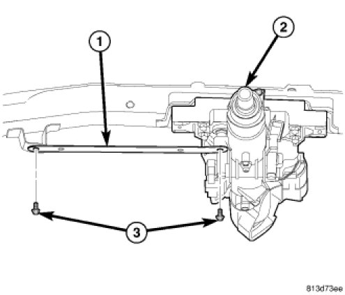 20. If equipped with electronic telescoping column, remove the screws (3) mounting the brace (1) to the steering column (2) and support beam bracket.