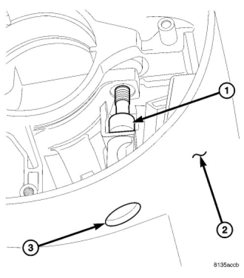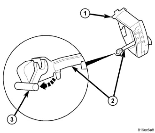 9. Back out the set screw (1) through the access hole (3) in the steering column control module (SCCM) (2) securing the multi-function SCCM assembly.
