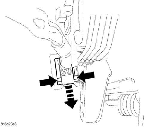 15. Depress the tabs on the rear of the column wiring harness connector and remove the connector from the steering column.