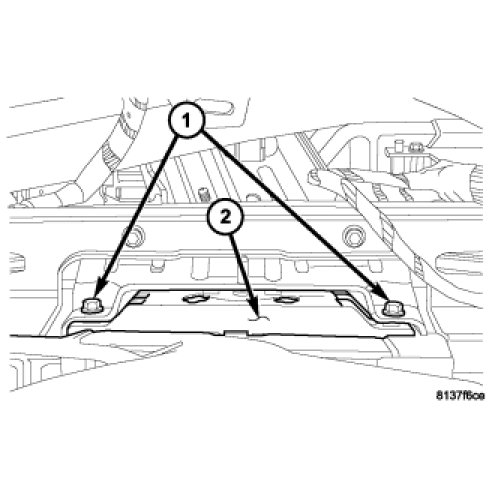 22. Remove the two upper mounting screws (1) from the steering column (2).
