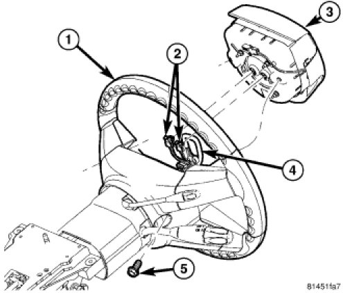 8. Loosen at least one clockspring screw (1) to prevent the clockspring from unwinding.
