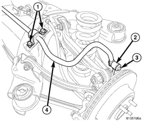 12. Install stabilizer bar (4) with cushions and retainers on crossmember.